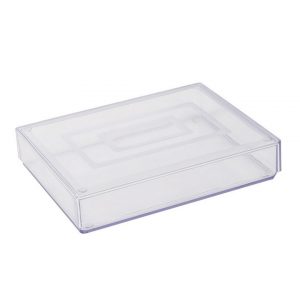 Caixa em papel cartão supremo 350g/m2 e tampa em acetato de 25 micras.
