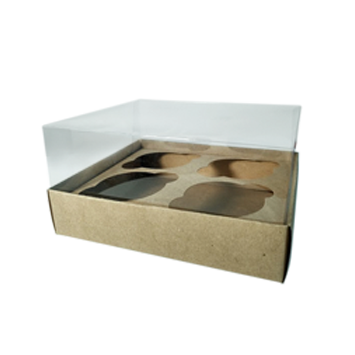 Caixa para 4 mini cupcakes em kraft com acetato