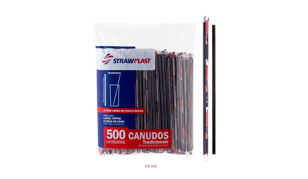 Embalagens com 200 ou 500 canudos.