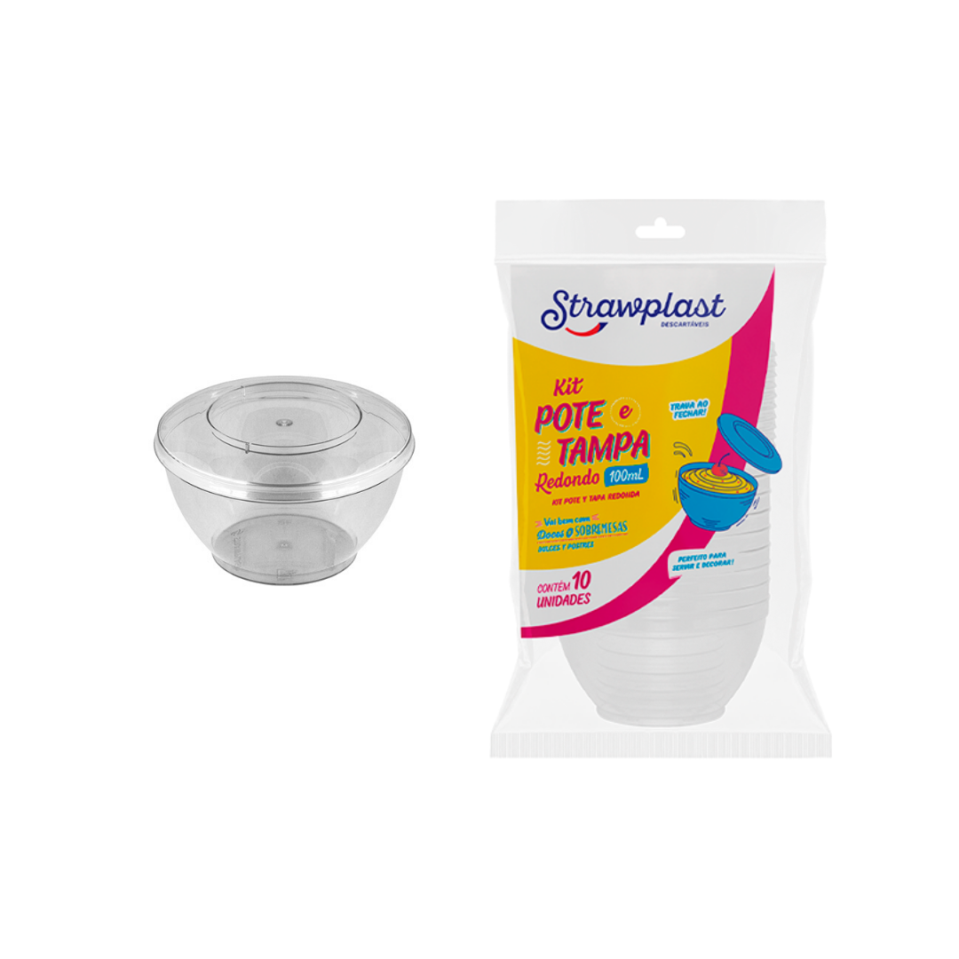 Kit Pote e Tampa 100ml Strawplast